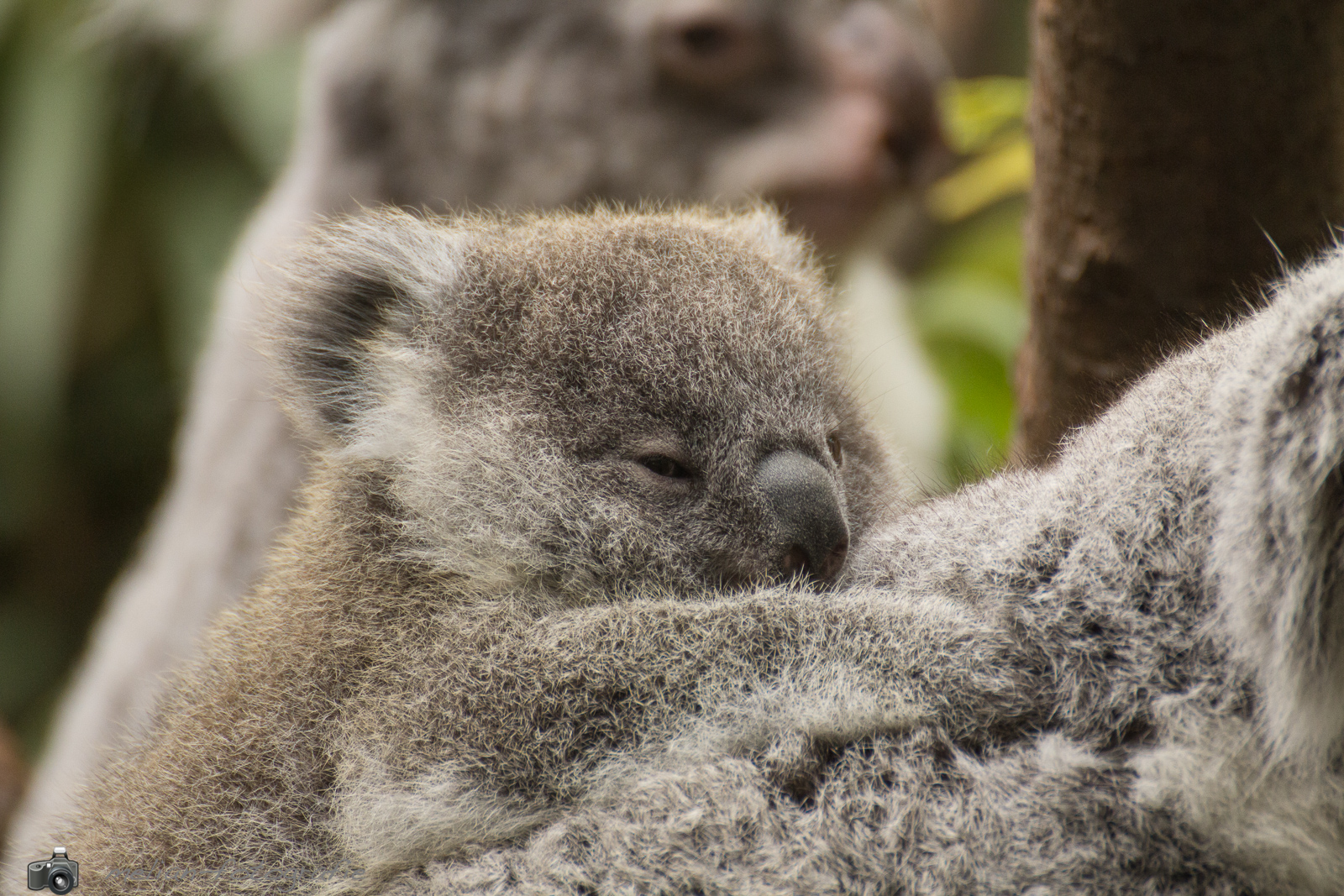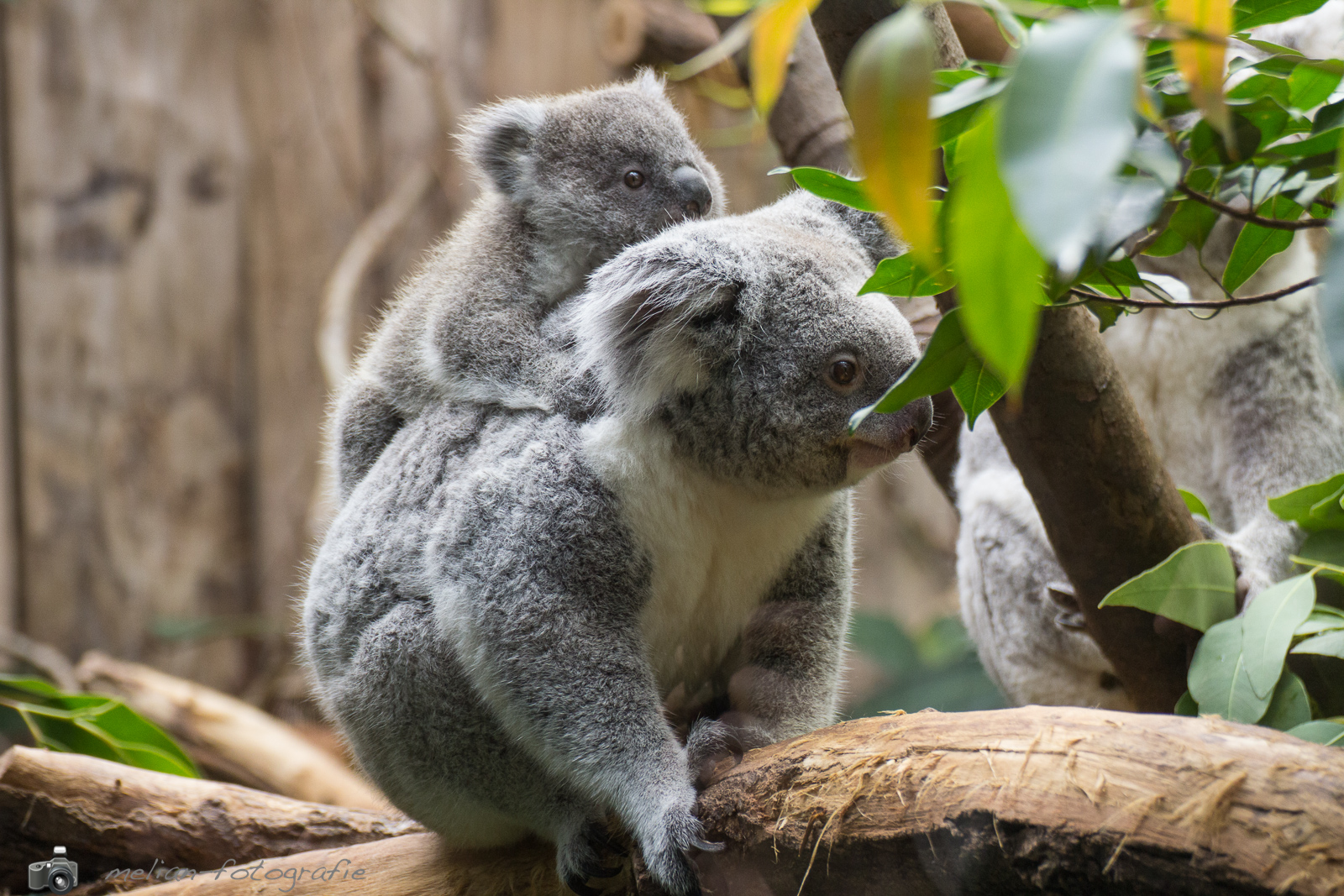 Koala-Baby mit Mama unterwegs